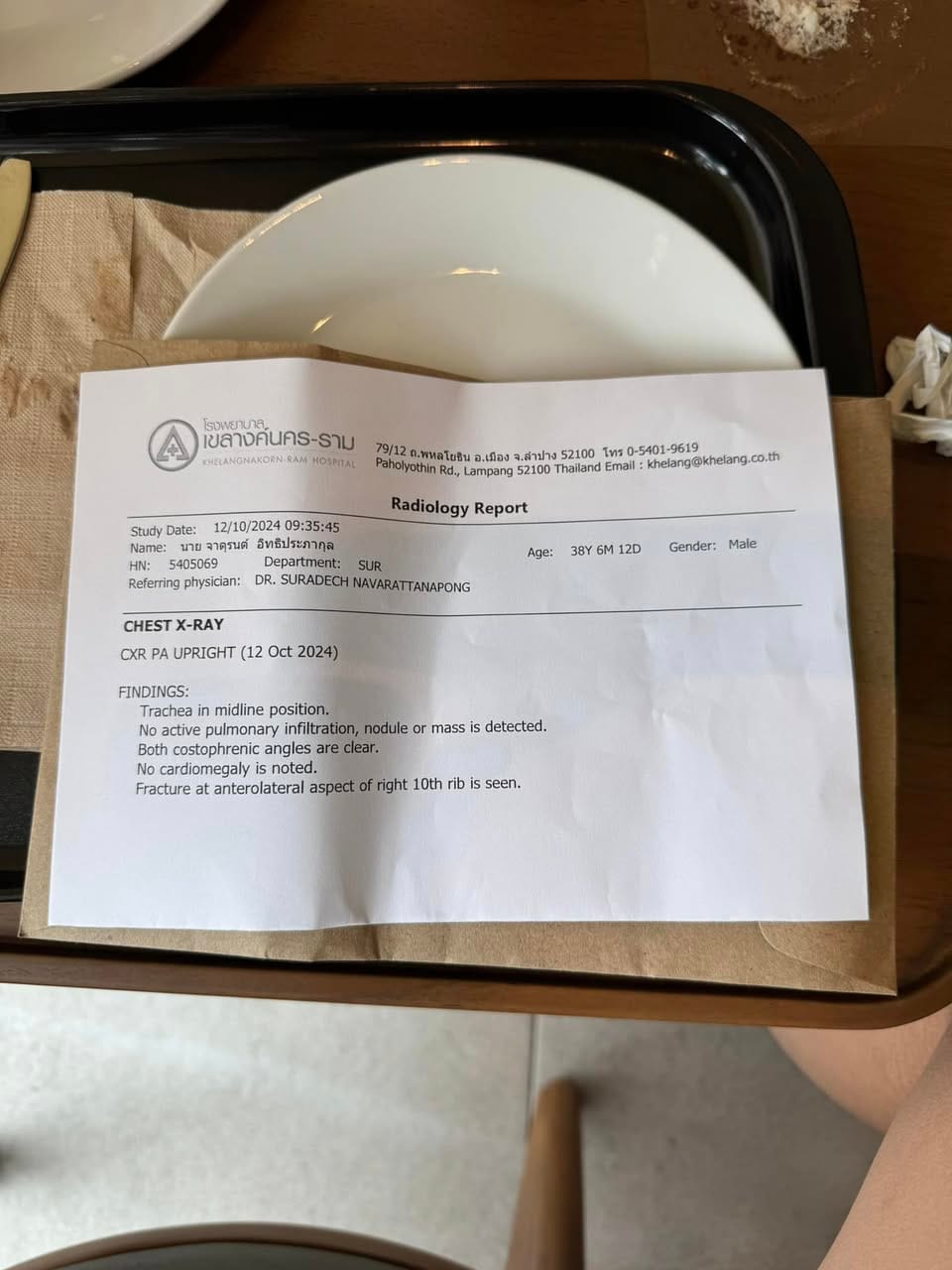วันต่อมา มันก็เจ็บมากขึ้น ก็เลยไป X-Ray ที่โรงพยาบาล เพราะว่า อีกไม่กี่วัน ก็ต้องเดินทางไปเที่ยวญี่ปุ่นละ คิดว่าไม่ได้เป็นอะไร ไปเอายามากิน กับไปเอายามาทา ก็น่าจะจบ ไม่มีอะไร
